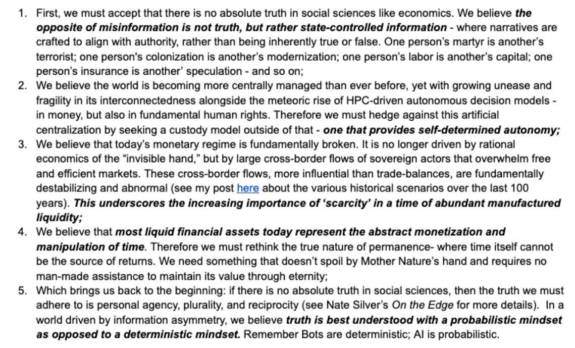 One of the tenets I espouse in my Radical Portfolio Theory and Manifesto is that we must believe in our own agency as truth seekers with a probabilistic mindset. See my five principles below (and here).